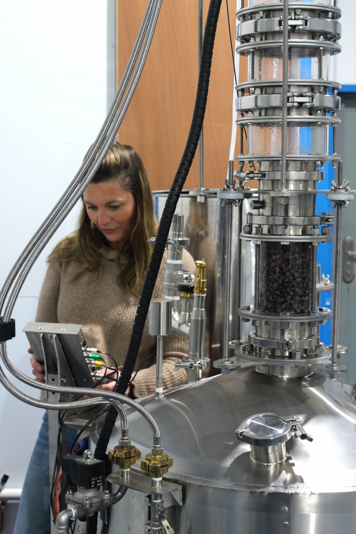 When not being a mum she runs the distillery, which features cutting-edge technology that uses up to 75% less energy than a traditional copper still. This automation gives us complete control over the spirits production process, meaning we can recreate the same handcrafted recipes time after time. Fi takes her inspiration from the flavour profiles of our still and sparkling wines. All our spirits are blended with natural mineral water drawn from the aquifer which runs below the distillery.